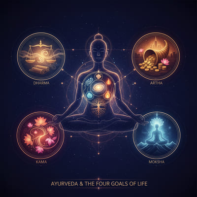 چهار هدف زندگی در فلسفه کلاسیک هندفلسفه کلاسیک هند، که پایههای آیورودا و یوگا از آن سرچشمه گرفتهاند، بر چهار هدف اصلی زندگی تأکید دارد. این اهداف شامل دارما (شیوه صحیح زندگی)، آرتا (ثروت مادی)، کاما (لذت حسی) و موکشا (روشنضمیری) هستند. این اصول راهنمایی برای داشتن یک زندگی متعادل و رسیدن به حقیقت غایی محسوب میشوند.