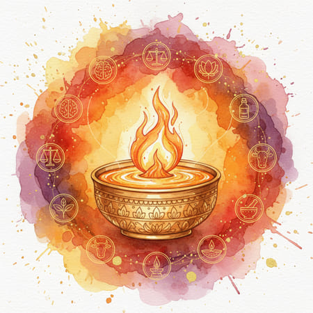 آگنی، آتش گوارشی بدن، کلید سلامتی و انرژی است. 🌿 با رعایت سبک زندگی آیورودایی، رژیم غذایی متعادل و تمرین یوگا، آگنی خود را تقویت کنید. ✨